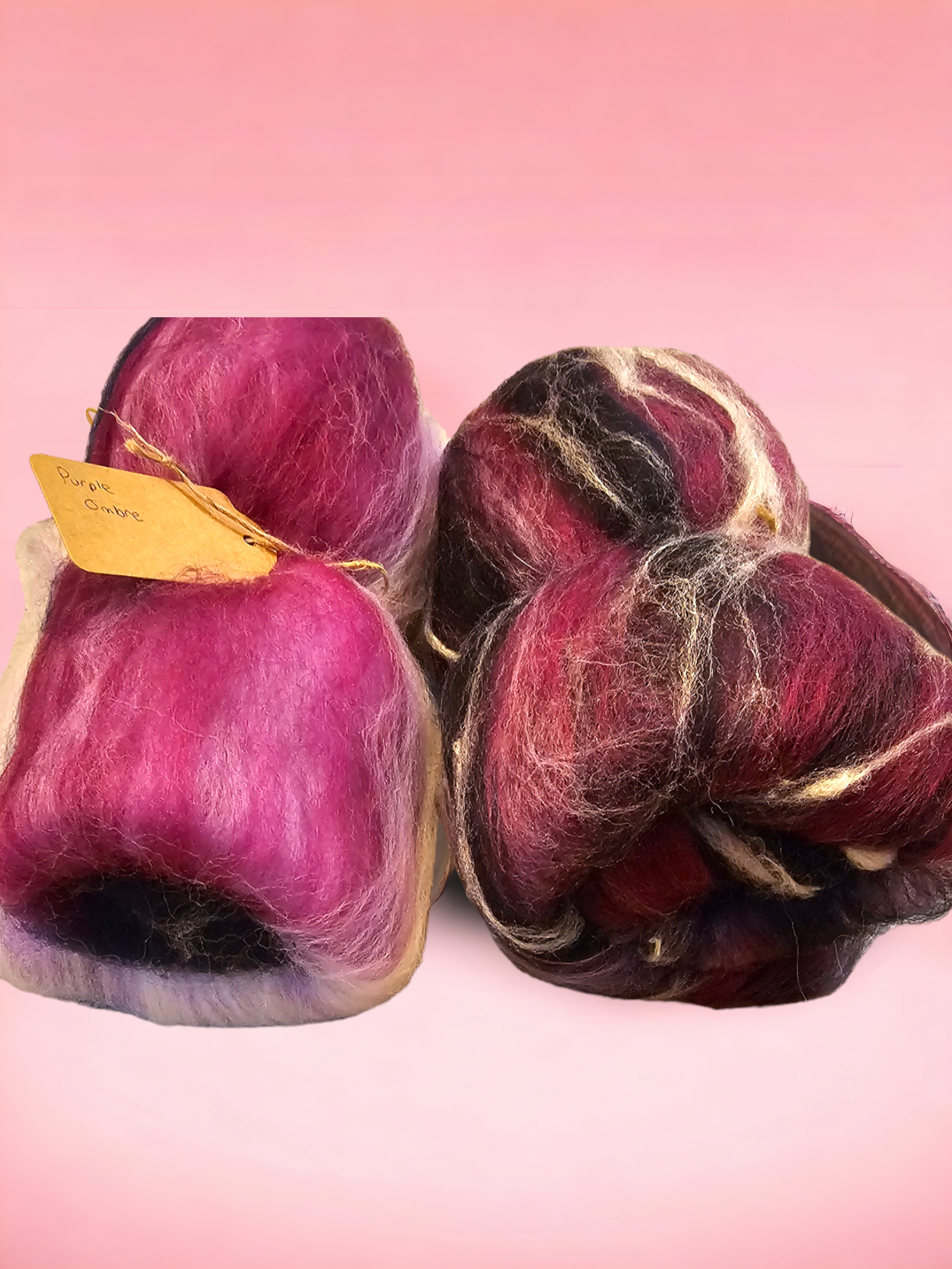 Beautiful shades of pink, light purple and navy merino wool with added white wool.