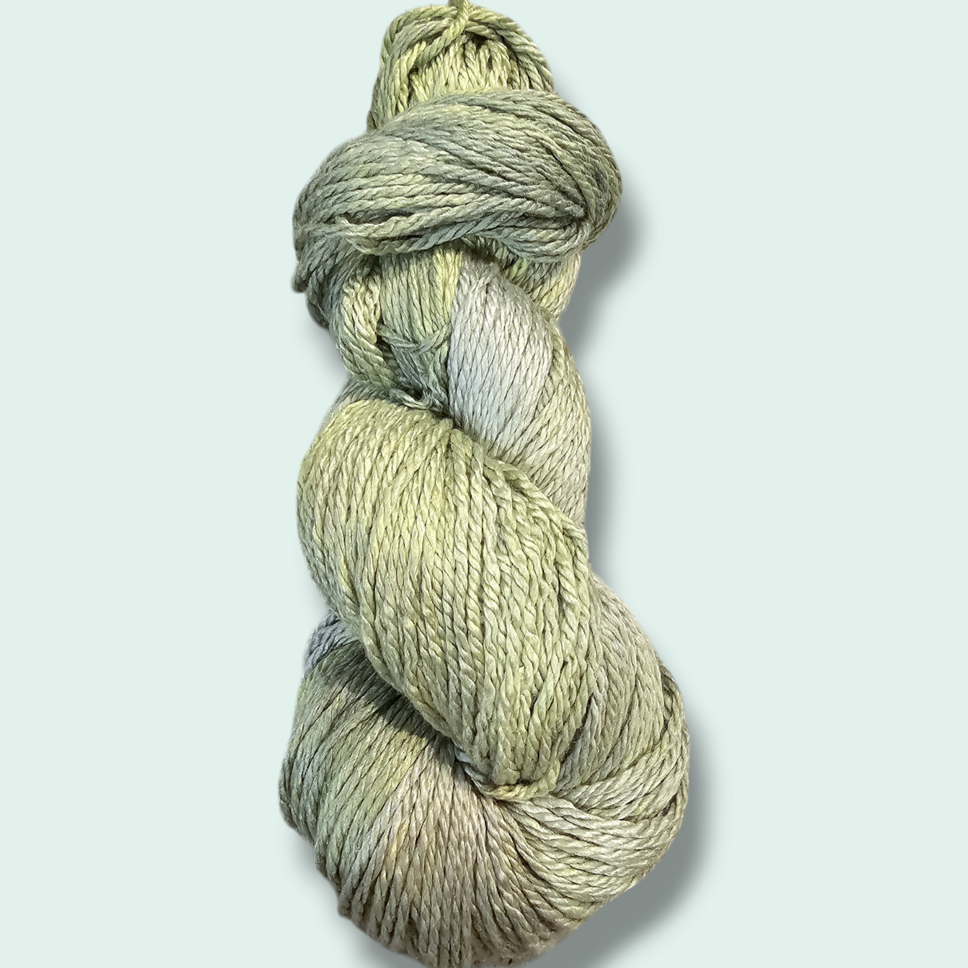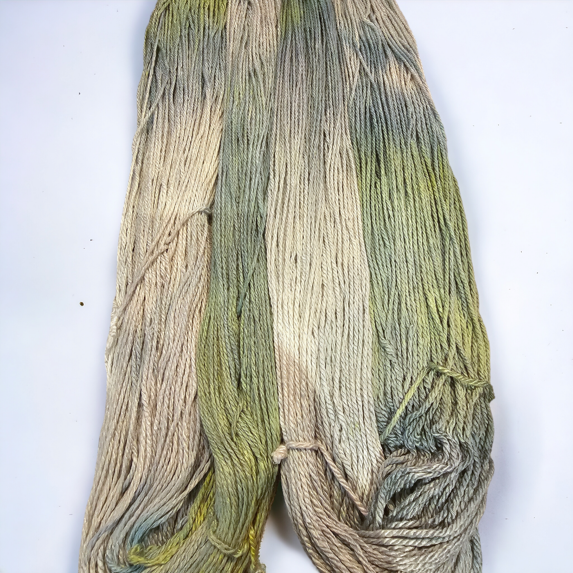 Commercially spun DK weight yarn . This yarn is 100% sheep's wool and has been Hand dyed in beautiful shades of green, turquoise yellows.