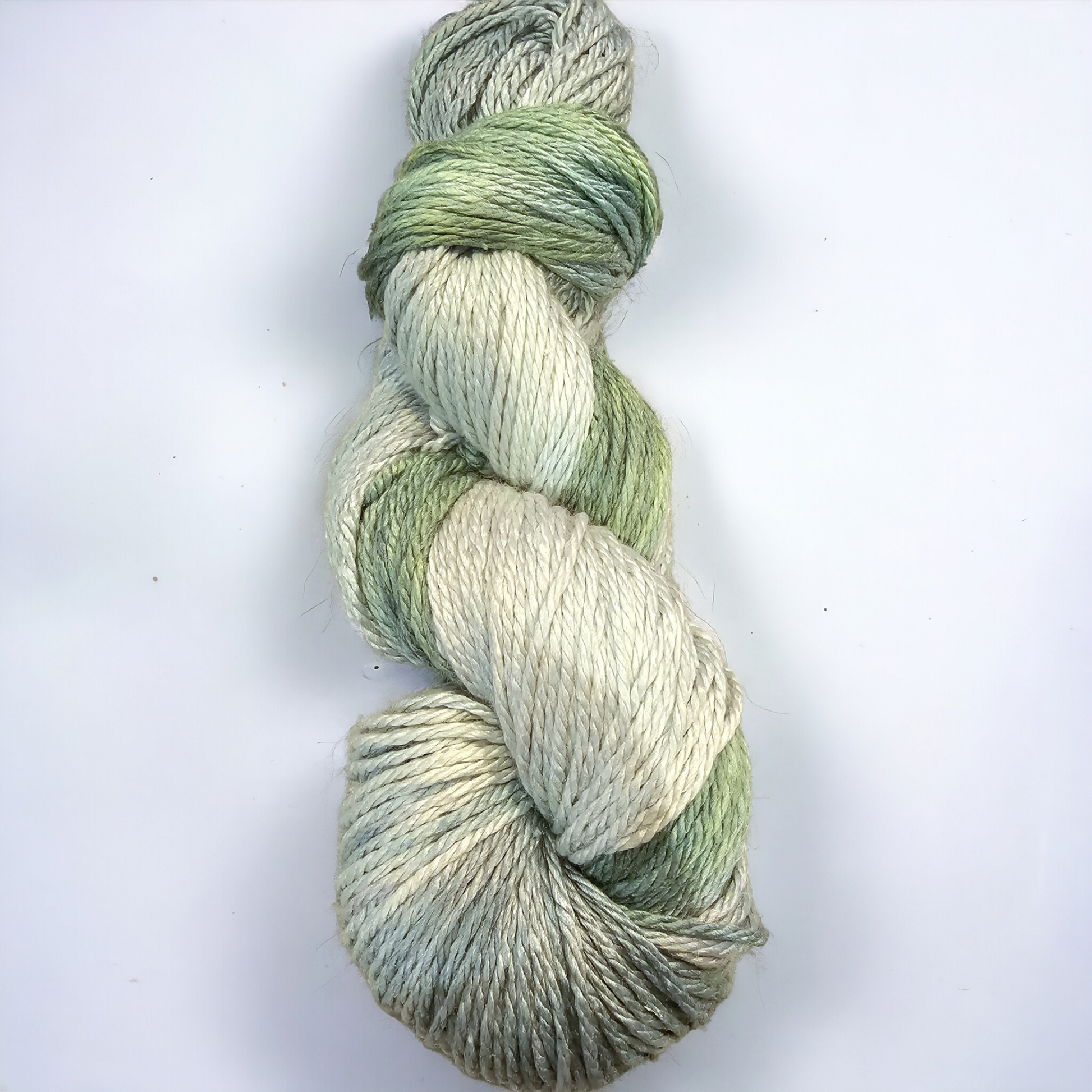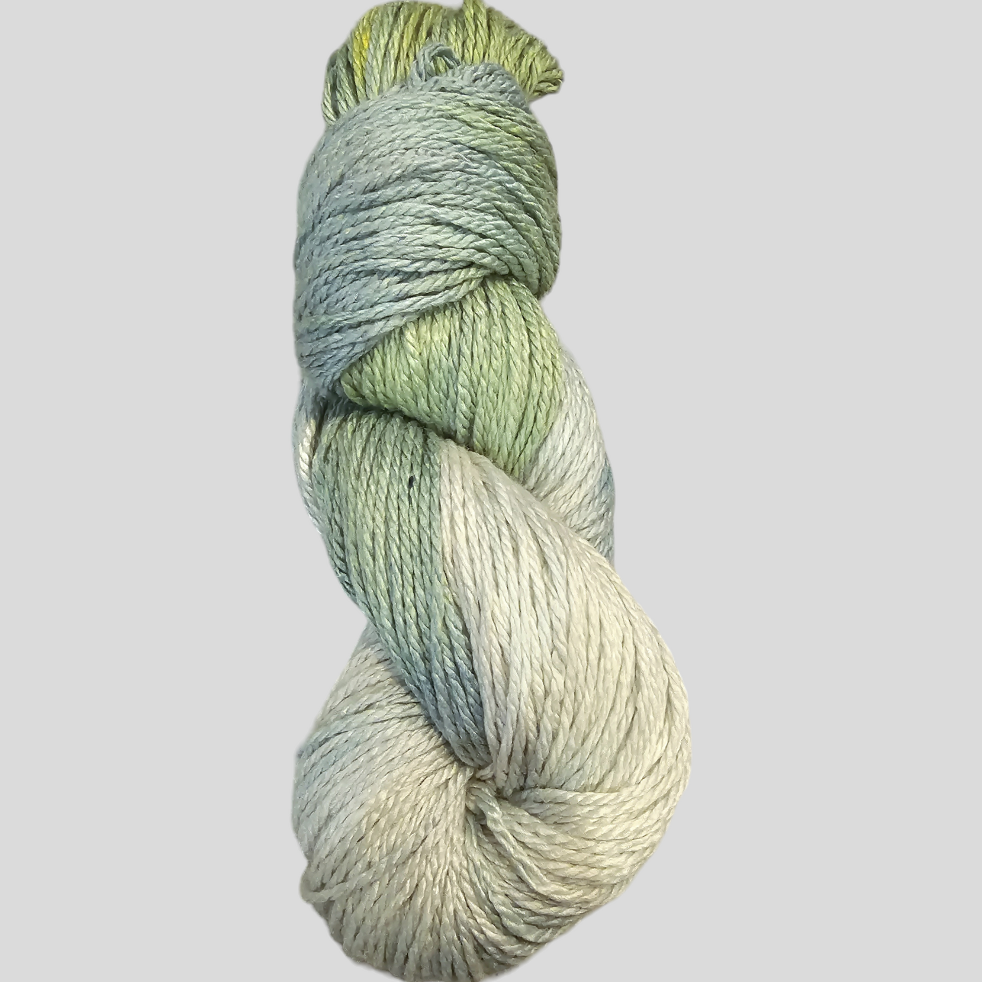Commercially spun DK weight yarn . This yarn is 100% sheep's wool and has been Hand dyed in beautiful shades of green, turquoise yellows.