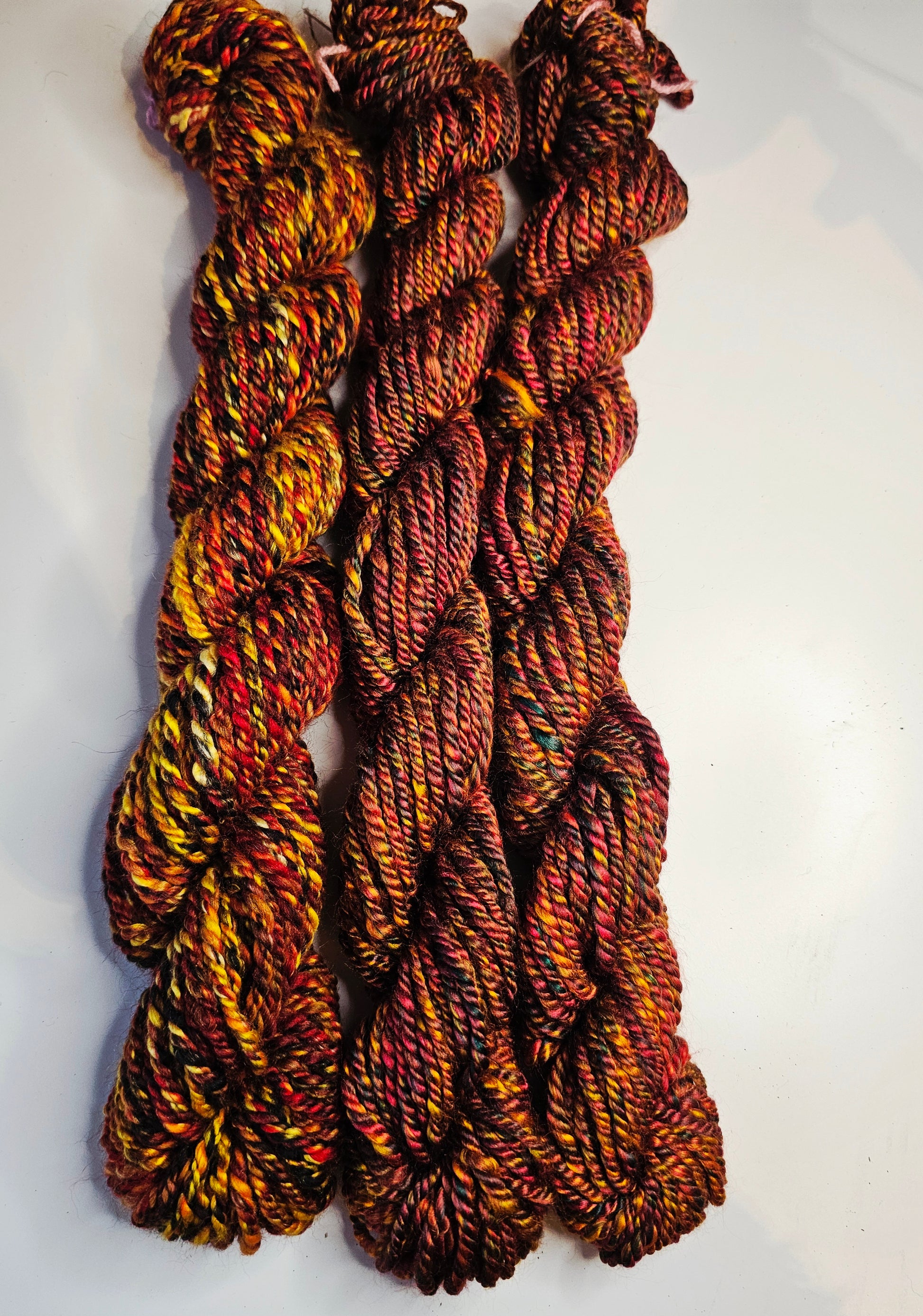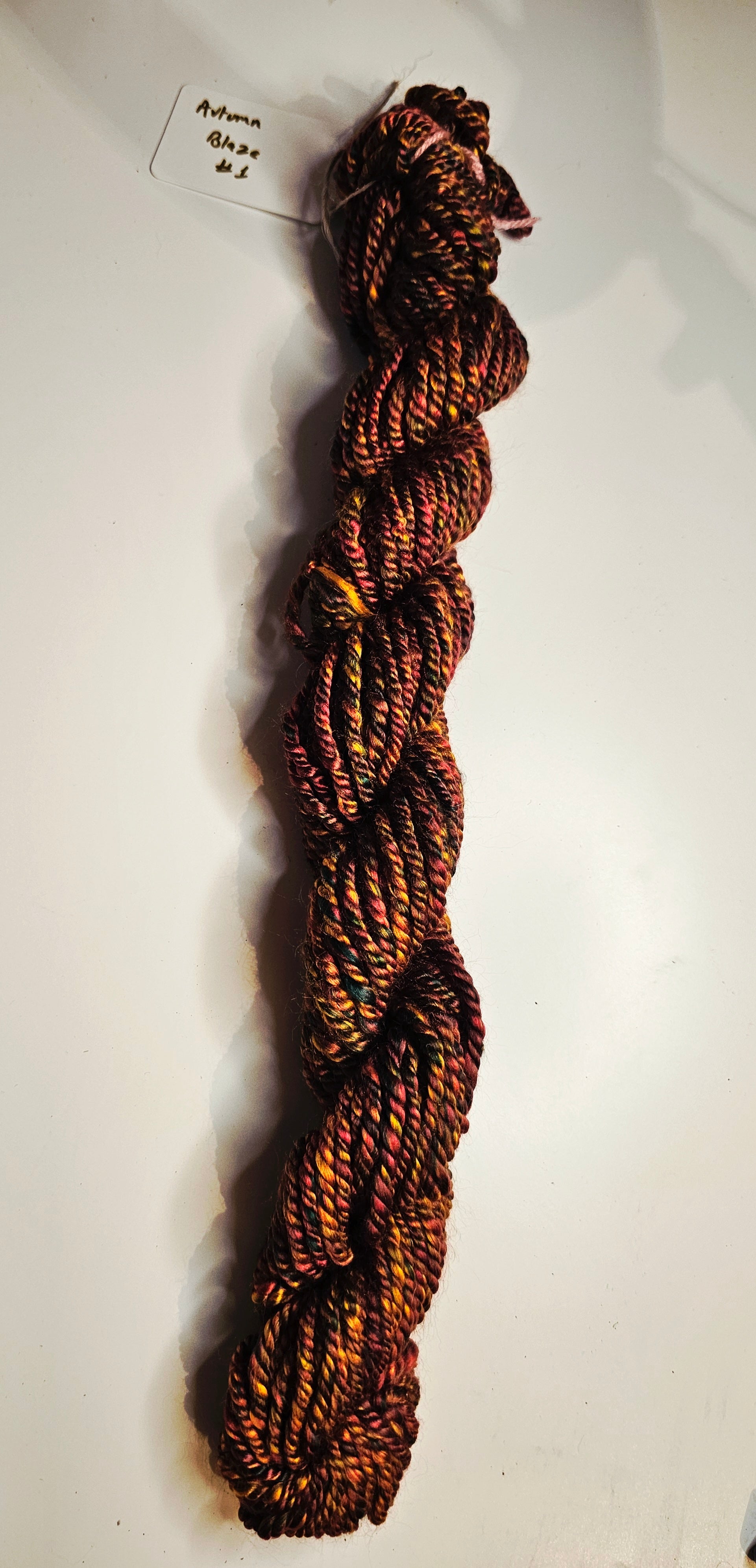 Hand-spun Yarn . Autumn Blaze Aran weight yarn