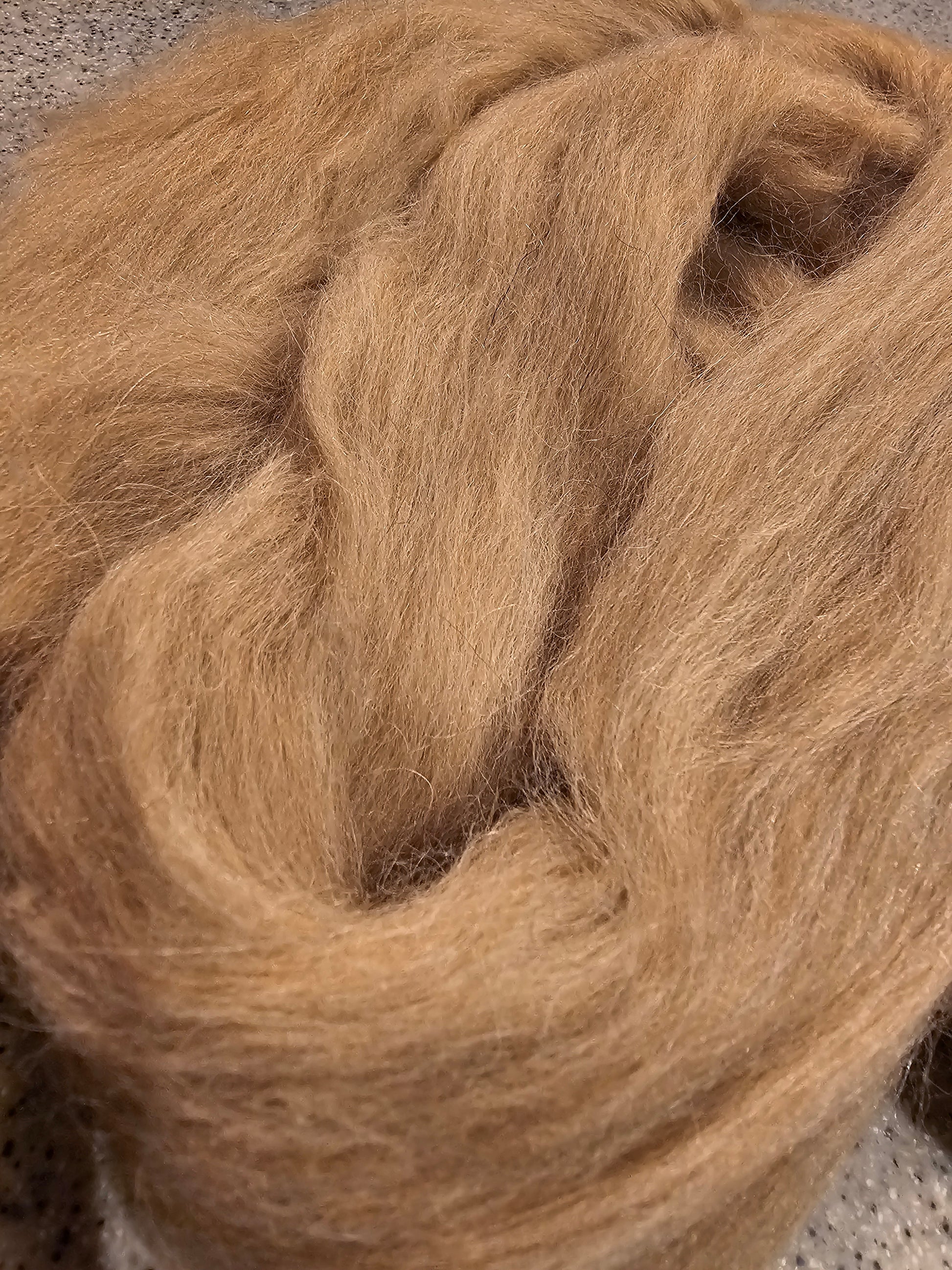 Fawn baby alpaca top. Huacaya Alpaca fibres are a soft luxury fibre with a light crimp, which makes hand spinning this fibre easier than other speciality fibres. It also means the fibres are a lighter weight than wool but are still nice and warm.