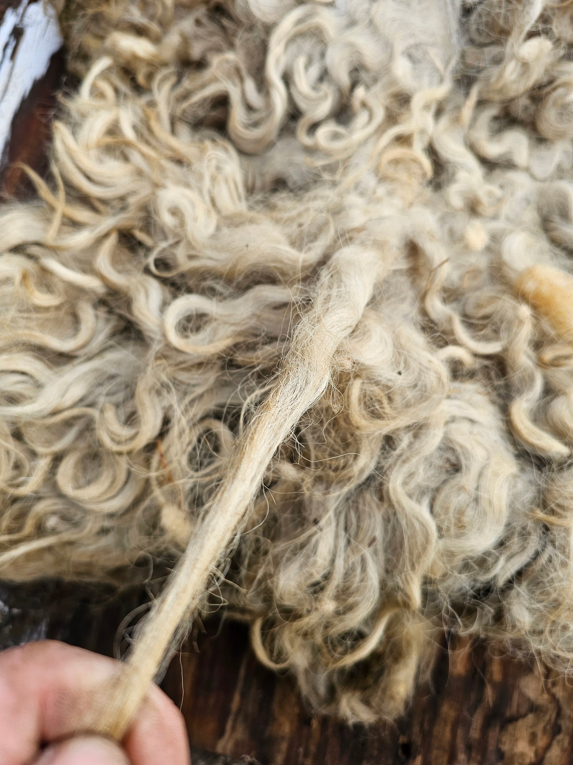 Fleece- Lambswool 1st Shear. Intact (1 whole piece). Slightly felted on the back, Super Soft, very long staple length.