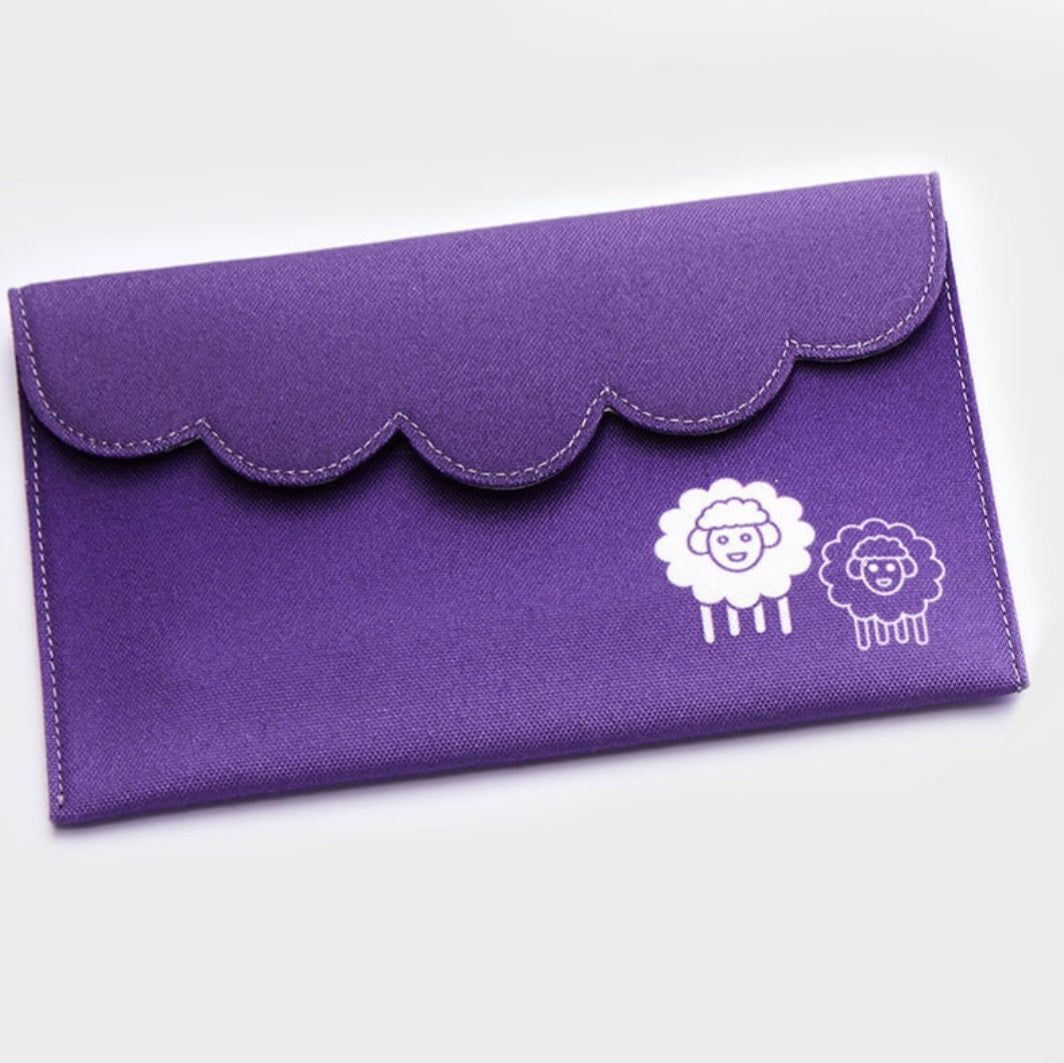 The set of 5 sizes of Single Ended Symfonie Wood Crochet Hooks (3.5, 4.5, 5.0, 6.0 & 8.0 mm) are packed in a plush purple fabric case. Enhancing the beauty is the scalloped edge and two lovely sheep that make the case pretty and functional for various purposes.