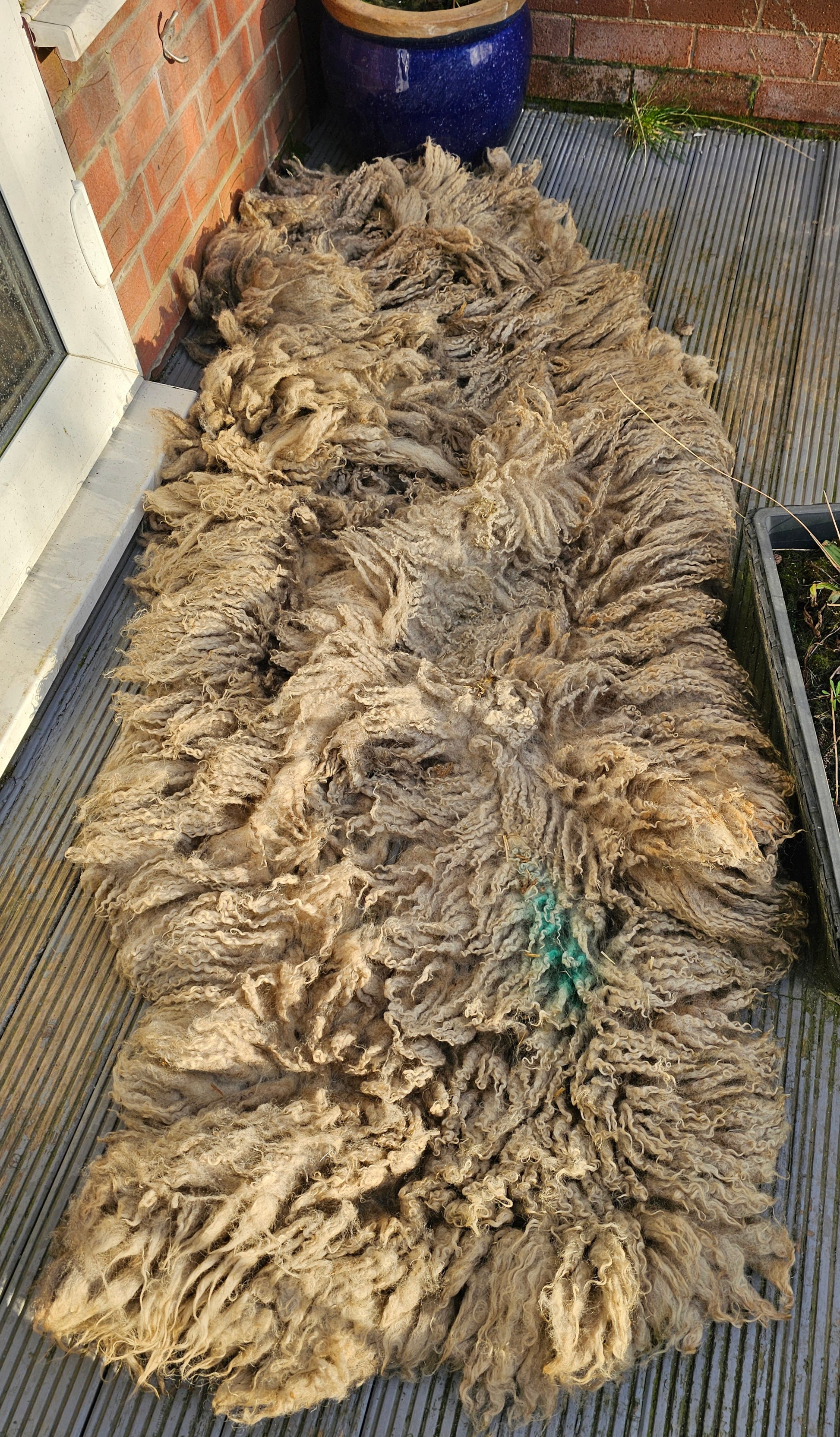 Lovely whole fleece. Much bigger than i expected so plenty to work with. Looks better than photo. Looking forward to washing and combing then spinning. Very pleased so far. Thank you. Shop added to my list and am sure will find more lovely things.